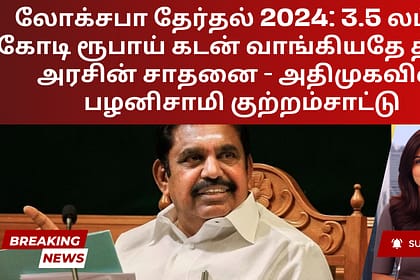 அதிமுகவின் பொதுச்செயலாளர் எடப்பாடி கே.பழனிசாமி, திமுக அரசின் மூன்றாண்டு கால ஆட்சியில் மகத்தான சாதனையாக மக்கள் மீது 3.5 லட்சம் கோடி ரூபாய் கடன் சுமையில் உள்ளது என்று விமர்சித்தார். அவர் வாக்குறுதிகளை ந...