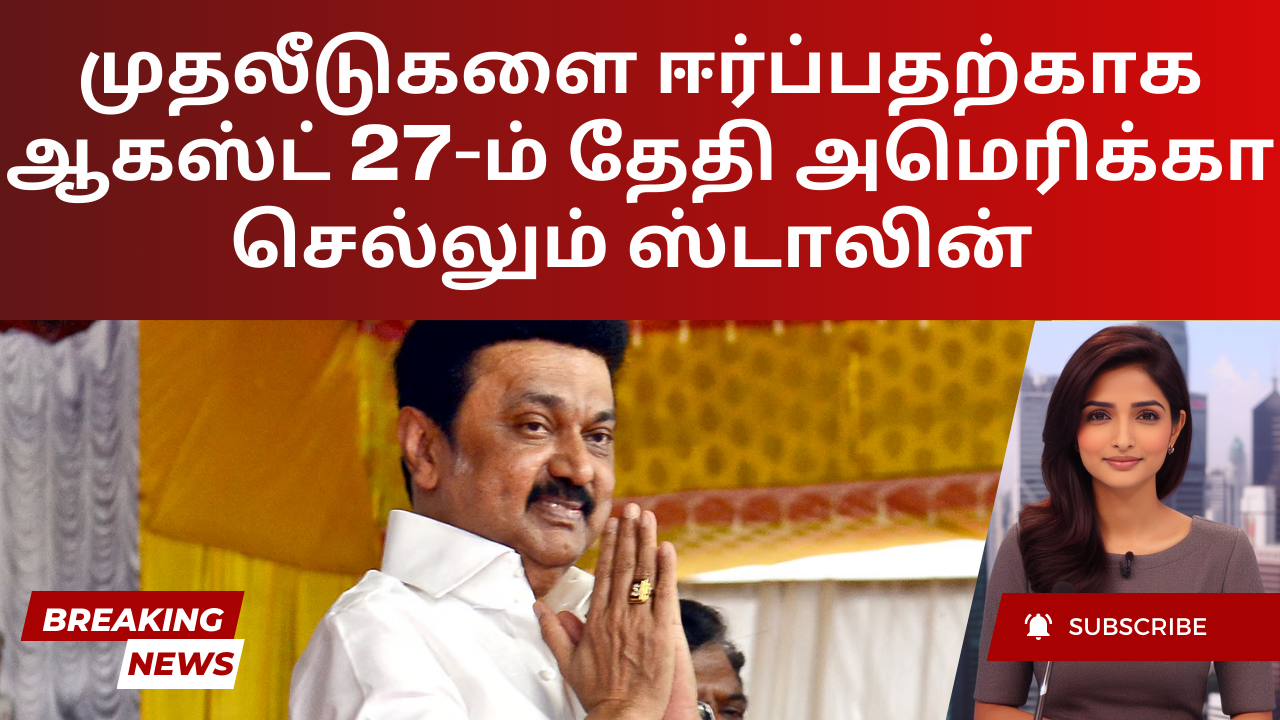 முதலீடுகளை ஈர்த்து, தமிழகத்திற்கு உயர்தர வேலை வாய்ப்புகளை உருவாக்குவதை நோக்கமாகக் கொண்டு, முதல்வர் ஸ்டாலின் செவ்வாய்க்கிழமை அமெரிக்காவுக்குப் பயணம் மேற்கொள்ள உள்ளார். அவரது பயணத்திட்டத்தில் சான் பிரான...