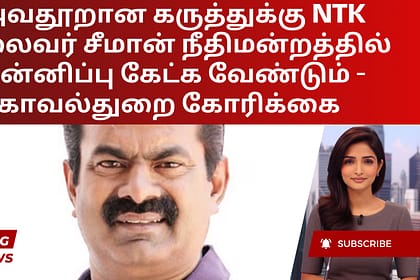 தனக்கும் அவரது குடும்பத்தினருக்கும் எதிராக NTK கட்சியினர் அவதூறாகப் பேசியதற்கு NTK தலைவர் சீமான் நீதிமன்றத்தில் முறையான மன்னிப்பு கேட்க வேண்டும் என்று மாவட்ட காவல் கண்காணிப்பாளர் டாக்டர் V வருண்குமார்...
