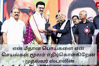 சனிக்கிழமை நடைபெற்ற சுயமரியாதை இயக்க நூற்றாண்டு விழாவில் உரையாற்றிய திமுக தலைவரும் முதலமைச்சருமான மு க ஸ்டாலின், “எனக்கு எதிராக பொய்கள் பரப்பப்படுகின்றன, ஆனால் எப்போதும் போல, நான் அவற்றை என் செயல்கள் ...