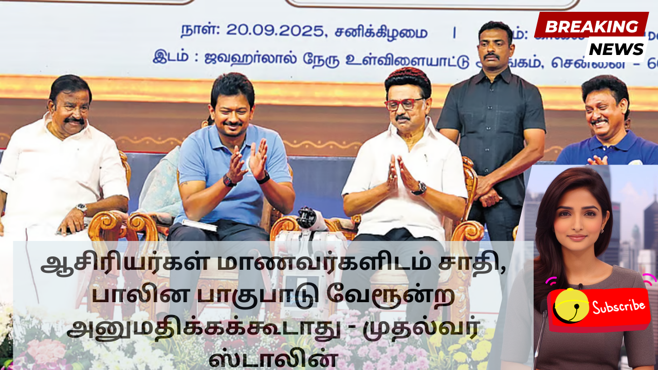 சாதிவெறி, பாலின சமத்துவமின்மை போன்ற பிற்போக்குத்தனமான கருத்துக்கள் மாணவர்களின் மனதில் வேரூன்றுவதைத் தடுக்கும் முக்கியப் பொறுப்பு ஆசிரியர்களுக்கு உண்டு என்று முதலமைச்சர் மு க ஸ்டாலின் சனிக்கிழமை வலியுற...