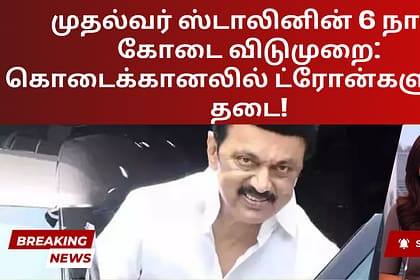 முதல்வர் ஸ்டாலின் மற்றும் அவரது குடும்பத்தினர் மே 4ம் தேதி வரை ஆறு நாட்கள் புகழ் பெற்ற மலைப்பகுதியான கொடைக்கானலில் தங்க உள்ளதால் ஆளில்லா விமானம் மற்றும் அனல் காற்று பலூன்கள் பயன்படுத்த தமிழக காவல்துற...