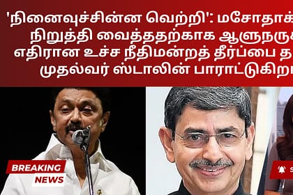 ஆளுநர் ஆர் என் ரவி மாநில சட்டமன்றத்தால் நிறைவேற்றப்பட்ட 10 மசோதாக்களுக்கு ஒப்புதல் அளிக்காமல் தடுத்து நிறுத்தியதற்கு எதிரான உச்ச நீதிமன்றத்தின் தீர்ப்பை தமிழக முதல்வர் ஸ்டாலின் பாராட்டினார். இது தமிழக...