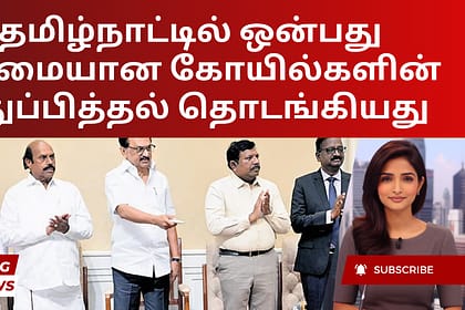 முதலமைச்சர் ஸ்டாலின் வெள்ளிக்கிழமை, மாநில செயலகத்தில் இருந்து காணொளி மாநாடு மூலம் ஒன்பது பழமையான கோயில்களின் புனரமைப்புப் பணிகளைத் தொடங்கி வைத்தார். இந்தக் கோயில்கள் இந்து சமய மற்றும் அறநிலையத் துறையா...