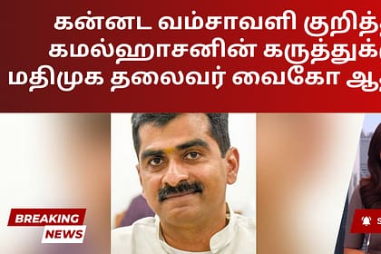 கன்னட மொழியின் தோற்றம் குறித்து நடிகர்-அரசியல்வாதி கமல்ஹாசன் சமீபத்தில் தெரிவித்த கருத்துகளுக்கு மதிமுக தலைவரும் மாநிலங்களவை உறுப்பினருமான வைகோ வியாழக்கிழமை ஆதரவு தெரிவித்தார். கன்னட மொழி தமிழிலிருந்த...