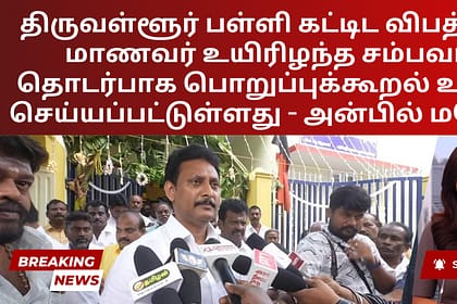 திருவள்ளூர் மாவட்டத்தில் பள்ளி கட்டிடம் தொடர்பான சம்பவத்தில் மாணவர் ஒருவர் உயிரிழந்ததைத் தொடர்ந்து, இது குறித்து விரிவான விசாரணை நடத்தப்பட்டு, பொறுப்பு நிர்ணயிக்கப்பட்டு, திருத்த நடவடிக்கைகள் எடுக்கப்...