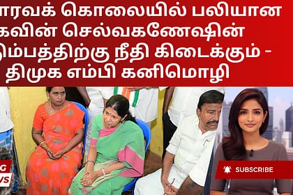 துாத்துக்குடி நாடாளுமன்ற உறுப்பினர் கனிமொழி கருணாநிதி, கௌரவக் கொலையில் உயிரிழந்த சி கவின் செல்வகணேஷின் துக்கத்தில் இருக்கும் குடும்பத்தினரை ஆறுமுகமங்கலத்தில் வியாழக்கிழமை சந்தித்தார். மாநில அமைச்சர்கள...