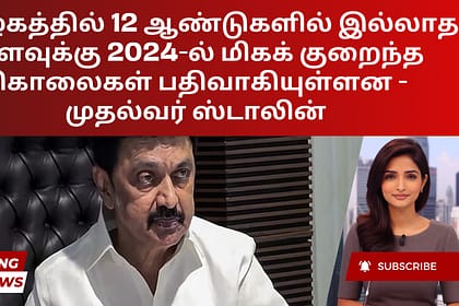 2024 ஆம் ஆண்டில் 12 ஆண்டுகளில் மிகக் குறைந்த கொலைகள் பதிவாகியுள்ளதாகவும், 1,540 வழக்குகள் பதிவாகியுள்ளதாகவும் தமிழக முதல்வர் ஸ்டாலின் அறிவித்தார். 2012 ஆம் ஆண்டில் பதிவான அதிகபட்ச கொலைகளின் எண்ணிக்கைய...