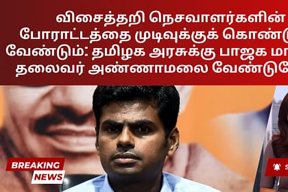 கோவை மற்றும் திருப்பூர் மாவட்டங்களில் கிட்டத்தட்ட இரண்டு வாரங்களாக வேலைநிறுத்தத்தில் ஈடுபட்டுள்ள விசைத்தறி நெசவாளர்களின் கவலைகளை நிவர்த்தி செய்யுமாறு பாஜக மாநிலத் தலைவர் கே அண்ணாமலை தமிழக அரசைக் கேட்ட...