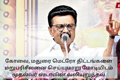 கோவை மற்றும் மதுரைக்கான மெட்ரோ ரயில் திட்டங்களை மத்திய அரசு நிராகரித்தது குறித்து முதல்வர் மு க ஸ்டாலின் பிரதமர் நரேந்திர மோடிக்கு விரிவான கடிதம் எழுதி, தனது “ஏமாற்றத்தையும் வேதனையையும்” த...