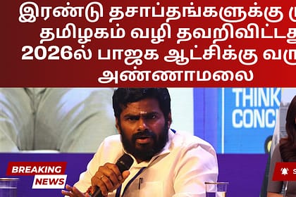 திங்க்எடு மாநாடு 2025 இல் பேசிய தமிழ்நாடு பாஜக தலைவர் கே அண்ணாமலை, இரண்டு தசாப்தங்களுக்கு முன்பே மாநிலம் தனது பாதையை இழந்துவிட்டது என்றும், 2026 தமிழ்நாடு சட்டமன்றத் தேர்தலில் பாஜக ஆட்சிக்கு வரும் என்...