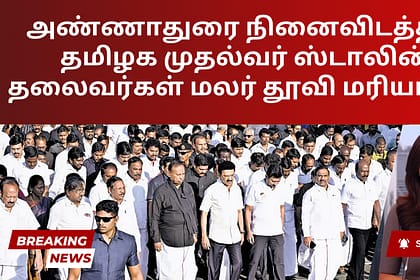 பிப்ரவரி 3, 2025 அன்று, முன்னாள் முதலமைச்சரும் திமுக நிறுவனருமான சி என் அண்ணாதுரையின் 56வது நினைவு தினத்தை முன்னிட்டு, சென்னையில் நடைபெற்ற அமைதி ஊர்வலத்திற்கு தமிழக முதல்வர் மு க ஸ்டாலின் தலைமை தாங்கி...