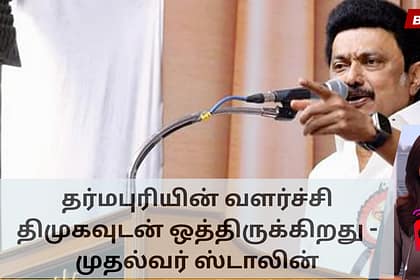 தர்மபுரியின் வளர்ச்சியும் வளர்ச்சியும் திமுகவின் முயற்சிகளுடன் நெருக்கமாகப் பிணைந்துள்ளது என்று முதல்வர் ஸ்டாலின் ஞாயிற்றுக்கிழமை தெரிவித்தார். ஒரு நிகழ்வில் பேசிய அவர், 2008 ஆம் ஆண்டு முன்னாள் முதல்வ...