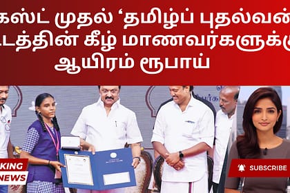 புதிய ‘தமிழ்ப் புதல்வன்’ திட்டப் பயனாளிகளுக்கு ஆகஸ்ட் மாதம் முதல் 1,000 ரூபாய் மாதாந்திர உதவித் தொகை வழங்கப்படும் என செயல்தலைவர் ஸ்டாலின் அறிவித்துள்ளார். 10 மற்றும் 12ஆம் வகுப்பு பொதுத் த...