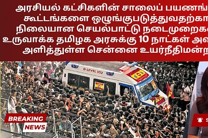 கரூரில் ஏற்பட்ட கூட்ட நெரிசல் போன்ற துயரங்களைத் தடுக்கும் முயற்சியாக, அரசியல் சாலை நிகழ்ச்சிகள் மற்றும் பொதுக் கூட்டங்களை ஒழுங்குபடுத்துவதற்காக பத்து நாட்களுக்குள் ஒரு வரைவு நிலையான செயல்பாட்டு நடைமுற...