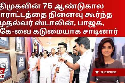 திராவிட முன்னேற்றக் கழகத்தின் 75 ஆண்டுகால பயணத்தை நினைவுகூர்ந்து, முதலமைச்சரும் கட்சியின் தலைவருமான மு க ஸ்டாலின் சனிக்கிழமை பாஜக மற்றும் தமிழக வெற்றிக் கழகத்தை கடுமையாக விமர்சித்தார். சென்னையில் நடைப...