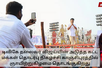 ‘மக்களை சந்திக்கவும்’ என்ற தனது முயற்சியின் அடுத்த கட்டமாக, ஞாயிற்றுக்கிழமை காஞ்சிபுரம் மக்களை டிவிகே தலைவர் மற்றும் நடிகரான விஜய் சந்திக்க உள்ளார். சென்னையின் புறநகரில் உள்ள ஒரு தனியார் க...