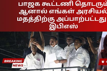 எதிர்க்கட்சித் தலைவரும், அதிமுக பொதுச் செயலாளருமான எடப்பாடி கே பழனிசாமி, அதிமுக தேசிய ஜனநாயகக் கூட்டணியிலிருந்து பிரிந்து செல்வதாக அரசியல் வட்டாரங்களில் பரவி வரும் வதந்திகளை நிராகரித்தார். திமுகவை கடு...