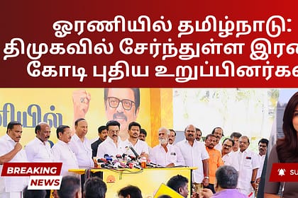 திமுகவின் ‘ஓரணியில் தமிழ்நாடு’ திட்டம் இரண்டு கோடி வாக்காளர் சேர்க்கை என்ற மைல்கல்லைத் தாண்டியுள்ளதாக அக்கட்சி அறிவித்துள்ளது. வியாழக்கிழமை மாலை சென்னையில் வாக்குச்சாவடி நிலை நிர்வாகிகளிடம் உரையாற்றிய...