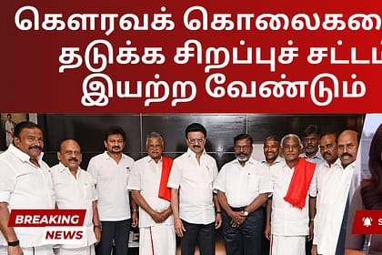 இடதுசாரிக் கட்சிகள் மற்றும் விடுதலைச் சிறுத்தைகள் கட்சித் தலைவர்கள் புதன்கிழமை சென்னையில் திமுக தலைவரும் முதலமைச்சருமான ஸ்டாலினைச் சந்தித்து, கௌரவக் கொலைகளைத் தடுக்க தமிழ்நாடு சட்டமன்றத்தில் ஒரு சிறப்...