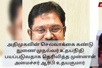 துணை முதல்வர் உதயநிதி ஸ்டாலின், அதிமுகவின் வளர்ந்து வரும் செல்வாக்கைக் கண்டு பயப்படுவதாக முன்னாள் அமைச்சர் ஆர் பி உதயகுமார் வியாழக்கிழமை குற்றம் சாட்டினார். இந்த பயத்தை மறைக்க, உதயநிதி அதிமுக பொதுச் ச...