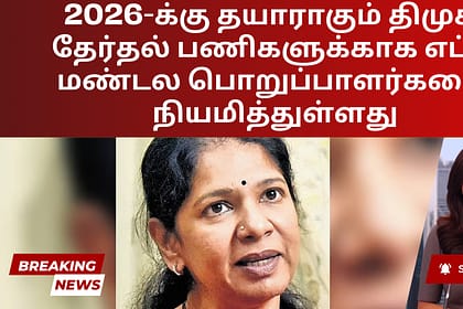 அதிகாரப்பூர்வமாக இன்னும் அறிவிக்கப்படவில்லை என்றாலும், தமிழ்நாட்டின் பல்வேறு பகுதிகளில் தேர்தல் தொடர்பான நடவடிக்கைகளை மேற்பார்வையிட எட்டு மூத்த தலைவர்களை திமுக தலைமை பிராந்திய பொறுப்பாளர்களாக நியமித்த...