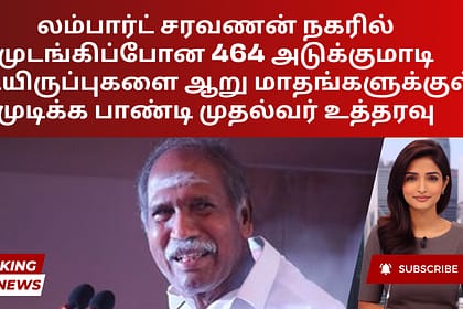 லம்பார்ட் சரவணன் நகரில் 464 தேங்கி நிற்கும் அடுக்குமாடி குடியிருப்புகளின் கட்டுமானப் பணிகளை ஆறு மாதங்களுக்குள் மீண்டும் தொடங்கி முடிக்குமாறு முதலமைச்சர் என் ரங்கசாமி அதிகாரிகளுக்கு அறிவுறுத்தியுள்ளார்...