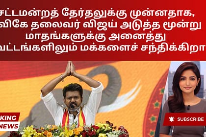 வரவிருக்கும் சட்டமன்றத் தேர்தலுக்கு முன்னதாக, டிவிகே தலைவர் விஜய் செப்டம்பர் 13 முதல் டிசம்பர் 20 வரை தமிழ்நாட்டின் அனைத்து மாவட்டங்களிலும் தனது ‘மக்களை சந்திக்கவும்’ பிரச்சாரத்தைத் தொடங்க...