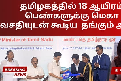 காஞ்சிபுரம் மாவட்டம் வல்லம் வடகலில் சிப்காட் மெகா தொழில்துறை குடியிருப்பு வசதியை பாக்ஸ்கான் தலைவர் இளஞ்செழியன் உடன் முதல்வர் ஸ்டாலின் சனிக்கிழமை திறந்து வைத்தார். 706.50 கோடி செலவில் 20 ஏக்கர் பரப்பளவ...