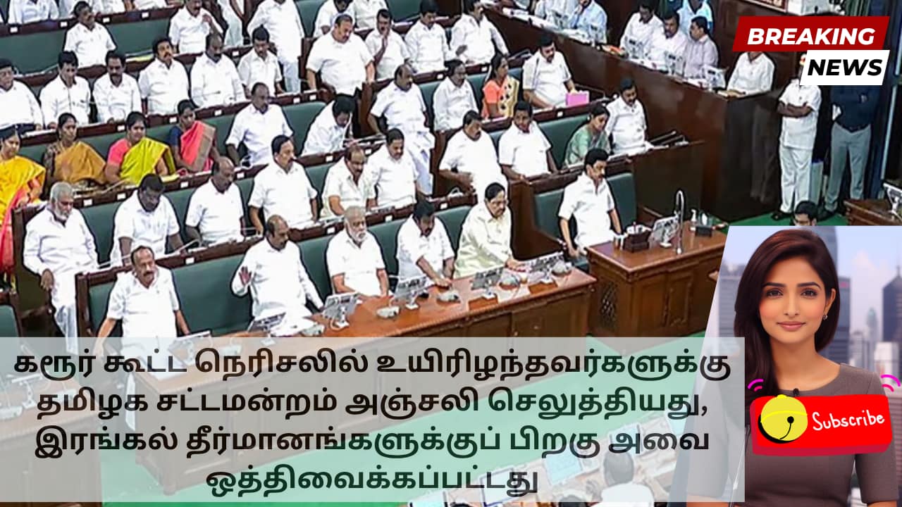 கரூர் கூட்ட நெரிசலில் உயிரிழந்தவர்களுக்கு தமிழக சட்டமன்றம் அஞ்சலி செலுத்தியது, இரங்கல் தீர்மானங்களுக்குப் பிறகு அவை ஒத்திவைக்கப்பட்டது