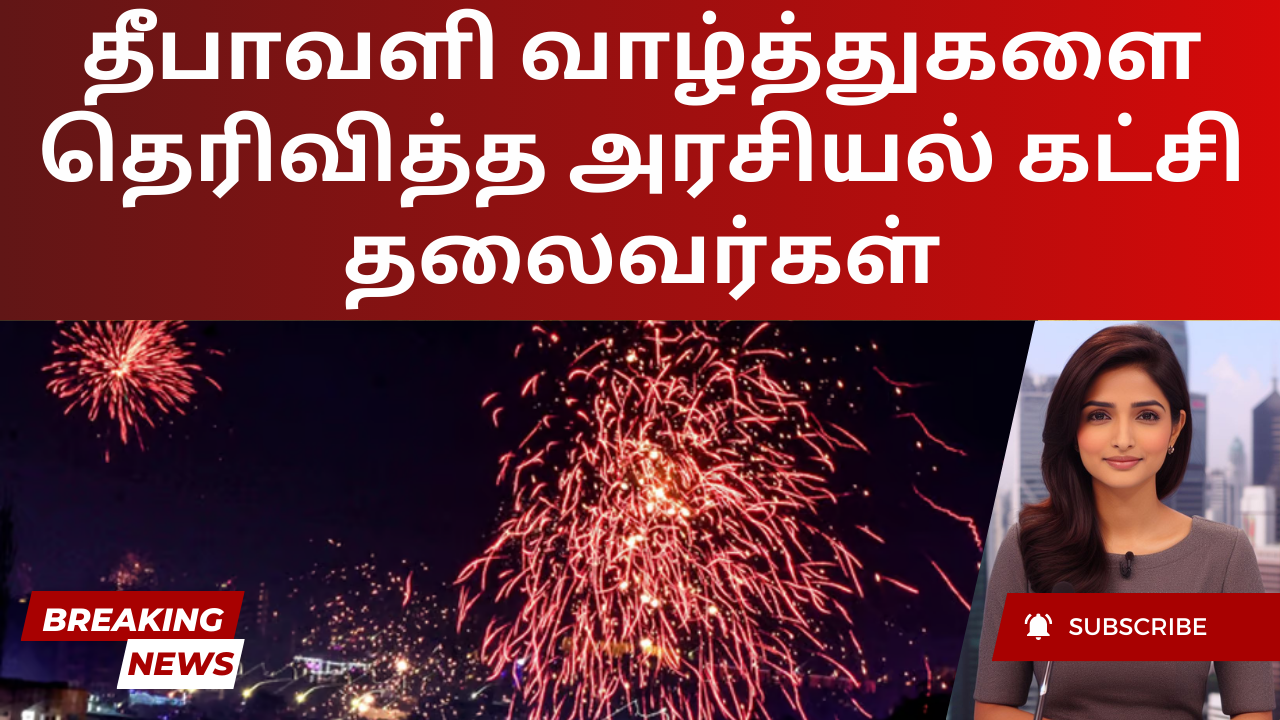 பல்வேறு அரசியல் கட்சிகளின் தலைவர்கள் தமிழக மக்களுக்கு இதயப்பூர்வமான தீபாவளி வாழ்த்துகளை தெரிவித்து, மகிழ்ச்சி, நம்பிக்கை மற்றும் வகுப்பு ஒற்றுமை பற்றிய செய்திகளை பகிர்ந்து கொண்டனர். இந்த விழா அனைவருக்கும் நிலைத்த மகிழ்ச்சியை அளிக்க வேண்டும் என அதிமுக பொதுச்செயலாளர் எடப்பாடி கே பழனிசாமி வாழ்த்து தெரிவித்துள்ளார். துக்கங்கள் நீங்கி, ஒவ்வொரு வீட்டிலும் மகிழ்ச்சி பரவி, நிரந்தர அமைதி மற்றும் செழுமையுடன் வாழ்வை ஆசீர்வதிக்கும் என்று அவர் நம்பிக்கை தெரிவித்தார்.