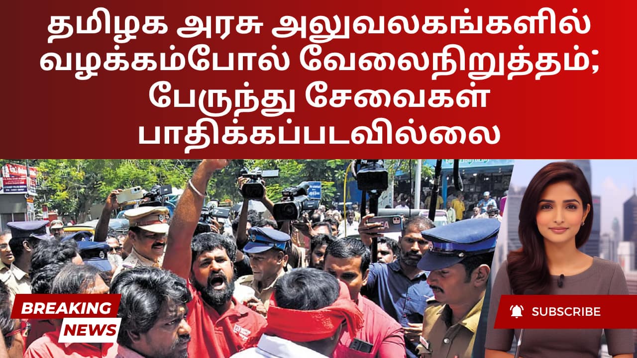 தமிழக அரசு அலுவலகங்களில் வழக்கம்போல் வேலைநிறுத்தம்; பேருந்து சேவைகள் பாதிக்கப்படவில்லை