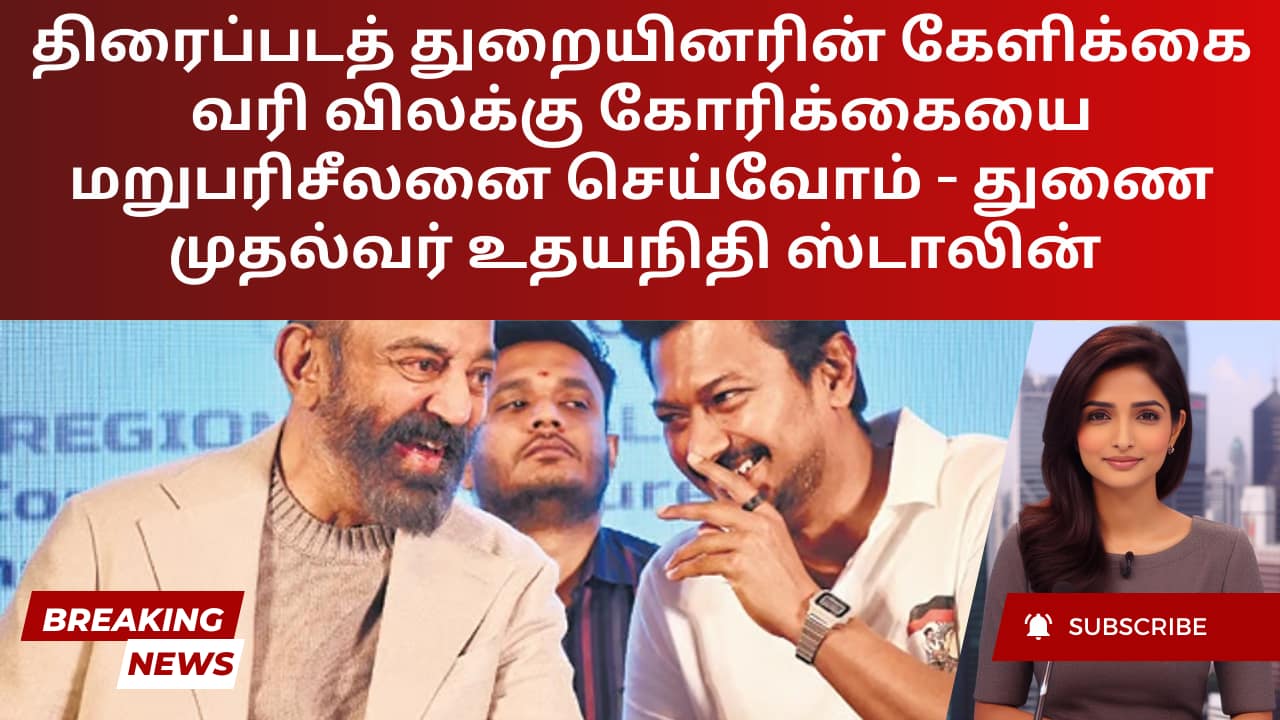 தொழில்துறைக்கு சாதகமான முடிவு கிடைக்கும் என்று உறுதியளித்த உதயநிதி, “முதல்வர் நிச்சயமாக விரைவில் ஒரு நல்ல அறிவிப்பை வெளியிடுவார் என்று நான் உறுதியளிக்கிறேன்” என்று உறுதியளித்தார். மாநிலத்தின் பொழுதுபோக்கு வரிக் கொள்கைகளை மறுபரிசீலனை செய்ய வேண்டும் என்ற மூத்த நடிகர் கமல்ஹாசனின் வேண்டுகோளுக்கு பதிலளிக்கும் விதமாக அவரது அறிக்கை வந்தது. சினிமா துறையில் இரட்டை வரிவிதிப்பு நிதிச் சுமையை ஹாசன் சுட்டிக்காட்டியிருந்தார், மேடைக்குப் பின்னால் இந்த பிரச்சினை குறித்து ஒரு சுருக்கமான விவாதம் நடத்தியதை வெளிப்படுத்தினார்.