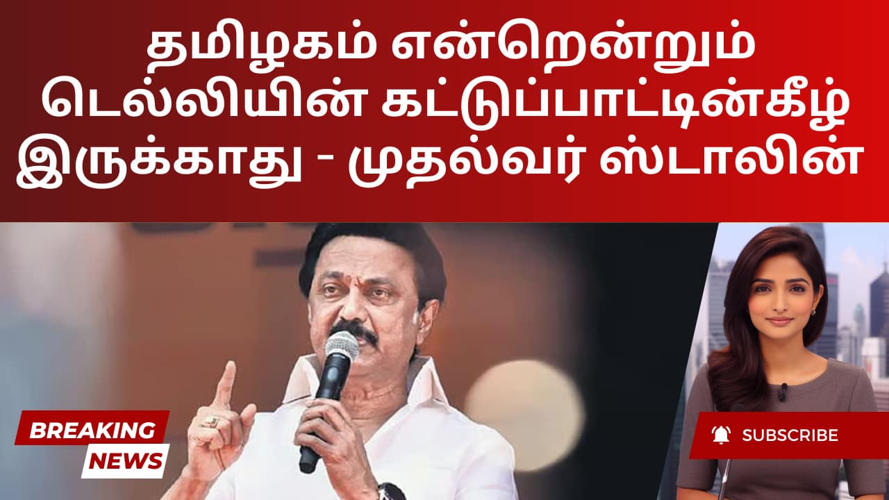 திருவள்ளூர் மாவட்டம் பொன்னேரியில் நடந்த அரசு நிகழ்வின் போது பாஜகவை கடுமையாக விமர்சித்த முதலமைச்சர் ஸ்டாலின், டெல்லியில் மத்திய அரசின் “கட்டுப்பாட்டை மீறி” தமிழ்நாடு எப்போதும் இருக்கும் என்று அறிவித்தார். அரசியல் வற்புறுத்தல் மற்றும் சோதனைகள் மூலம் அரசாங்கங்களை அமைக்கும் பாஜகவின் தந்திரோபாயங்களை நிராகரித்த ஸ்டாலின், அத்தகைய உத்திகள் தமிழ்நாட்டில் ஒருபோதும் வெற்றிபெறாது என்றார். 2026 ஆம் ஆண்டில் திமுகவின் கீழ் திராவிட மாதிரி மீண்டும் ஆட்சிக்கு வரும் என்பதை அவர் மீண்டும் உறுதிப்படுத்தினார், தமிழர்கள் ஆழமாக வேரூன்றிய சுயமரியாதை உணர்வைக் கொண்டுள்ளனர், மேலும் வெளிப்புற ஆதிக்கத்திற்கு ஒருபோதும் அடிபணிய மாட்டார்கள் என்பதை வலியுறுத்தினார்.