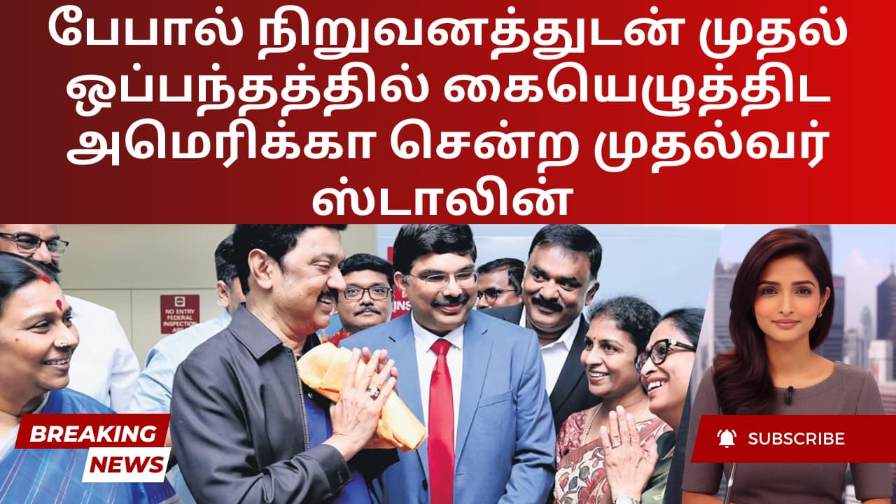 பேபால் நிறுவனத்துடன் முதல் ஒப்பந்தத்தில் கையெழுத்திட அமெரிக்கா சென்ற முதல்வர் ஸ்டாலின்