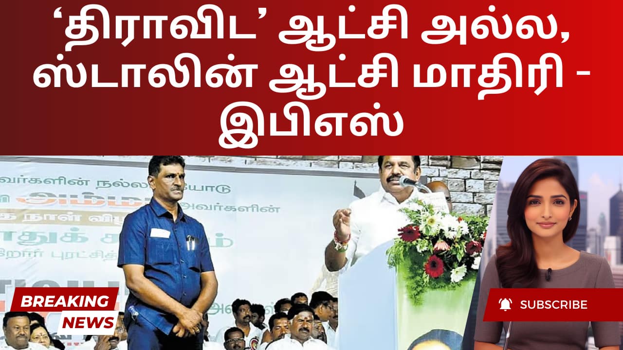 அதிமுக பொதுச் செயலாளர் எடப்பாடி பழனிசாமி, ஆளும் திமுக அரசை விமர்சித்தார், அது திராவிட மாதிரியை அல்ல, “ஸ்டாலின் மாதிரி ஆட்சியை” பின்பற்றுவதாகக் கூறினார். தேனி மாவட்டம் பெரியகுளத்தில் நடந்த பொதுக்கூட்டத்தில் பேசிய இபிஎஸ், அரசு தனது சித்தாந்த நிலைப்பாட்டிலிருந்து விலகி, முதலமைச்சர் ஸ்டாலினின் தலைமையின் கீழ் கொள்கைகளை செயல்படுத்துவதாக குற்றம் சாட்டினார்.