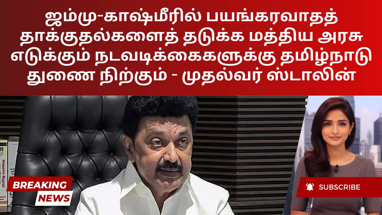 ஜம்மு-காஷ்மீரில் பயங்கரவாதத் தாக்குதல்களைத் தடுக்க மத்திய அரசு எடுக்கும் நடவடிக்கைகளுக்கு தமிழ்நாடு துணை நிற்கும் – முதல்வர் ஸ்டாலின்