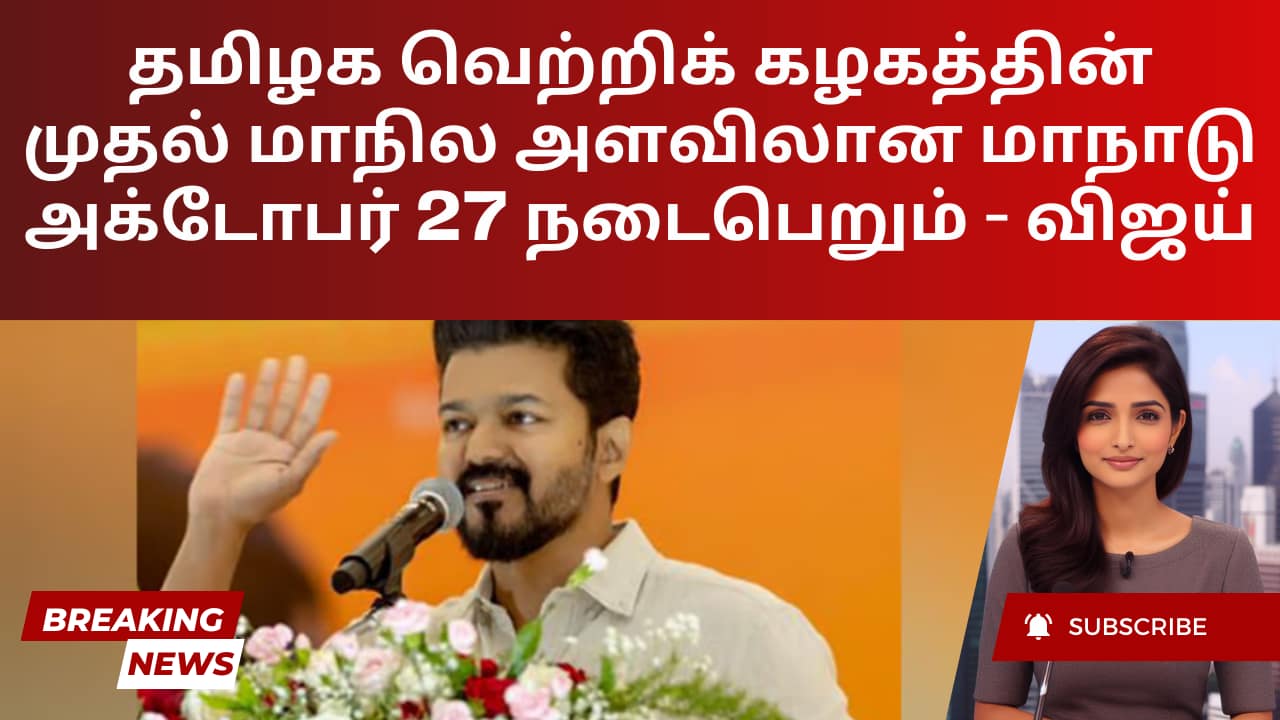 தமிழக வெற்றிக் கழகத்தின் முதல் மாநில அளவிலான மாநாடு அக்டோபர் 27 நடைபெறும் – விஜய்