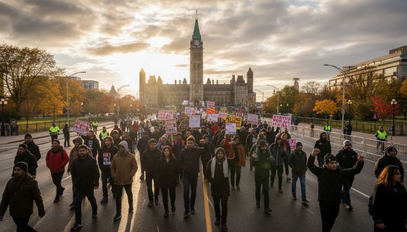 கனடாவின் தலைநகரான ஒட்டாவாவில் உள்ள நாடாளுமன்றக் குன்றின் (Parliament Hill) முன்பாக ஆயிரக்கணக்கான புலம்பெயர்ந்த தொழிலாளர்கள், சர்வதேச மாணவர்கள் மற்றும் ஆவணமற்ற மக்கள் ஒன்றிணைந்து ஒரு மாபெரும் போராட்டத்தை முன்னெடுத்தனர். ‘அனைவருக்கும் அந்தஸ்து’ (Status for All) என்ற முழக்கத்துடன் நடைபெற்ற இந்த பேரணியில், கனடாவில் வசிக்கும் அனைத்து தற்காலிக குடியிருப்பாளர்களுக்கும் உடனடியாக நிரந்தர குடியுரிமை வழங்க வேண்டும் என்று மத்திய அரசுக்கு அவர்கள் அழுத்தம் கொடுத்தனர்.