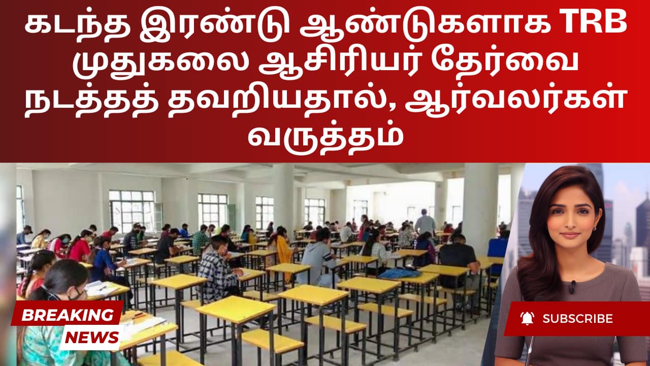 கடந்த இரண்டு ஆண்டுகளாக, முதுகலை பட்டதாரி தேர்வை ஆசிரியர் தேர்வு வாரியம் நடத்தாததால், ஆயிரக்கணக்கான ஆசிரியர் ஆர்வலர்கள் நிச்சயமற்ற நிலையில் உள்ளனர். ஆண்டு திட்டமிடுபவர்களை வெளியிட்ட போதிலும், TRB தேர்வுகளை நடத்தவில்லை, பல ஆர்வமுள்ள ஆசிரியர்களை குழப்பத்தில் ஆழ்த்தியுள்ளது. தாமதமானது அவர்களின் தொழில்முறை எதிர்காலத்தில் சந்தேகத்தை ஏற்படுத்தியுள்ளது, அடுத்த தேர்வுக்கான தெளிவான காலக்கெடு இல்லை.