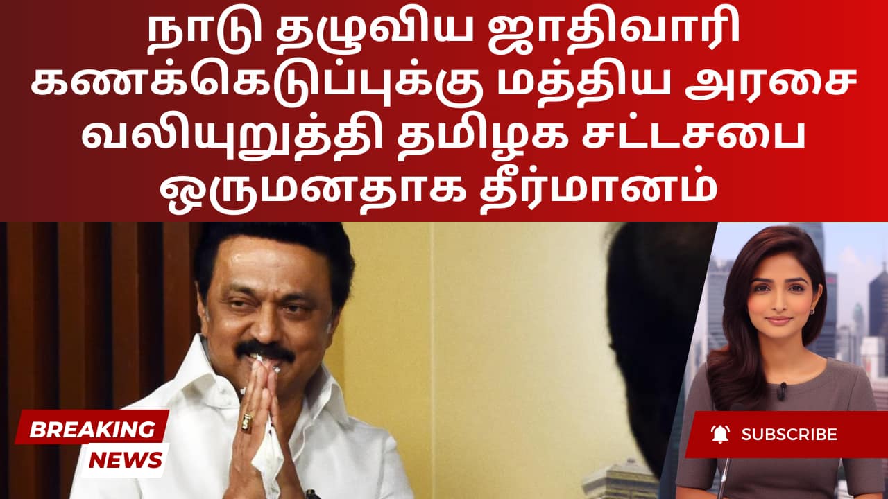 தமிழக முதல்வர் ஸ்டாலின் தலைமையிலான தமிழக சட்டசபையில், 2021 ம் ஆண்டு முதல் பத்தாண்டுகள் நிறைவடைந்த மக்கள் தொகை கணக்கெடுப்புடன், நாடு முழுவதும் ஜாதிவாரி கணக்கெடுப்பு நடத்த வேண்டும் என மத்திய அரசை வலியுறுத்தி ஒருமனதாக தீர்மானம் நிறைவேற்றப்பட்டது. இது அனைத்து குடிமக்களுக்கும் கல்வி, பொருளாதாரம் மற்றும் வேலைவாய்ப்பில் சம உரிமைகள் மற்றும் வாய்ப்புகளை உறுதி செய்கிறது.