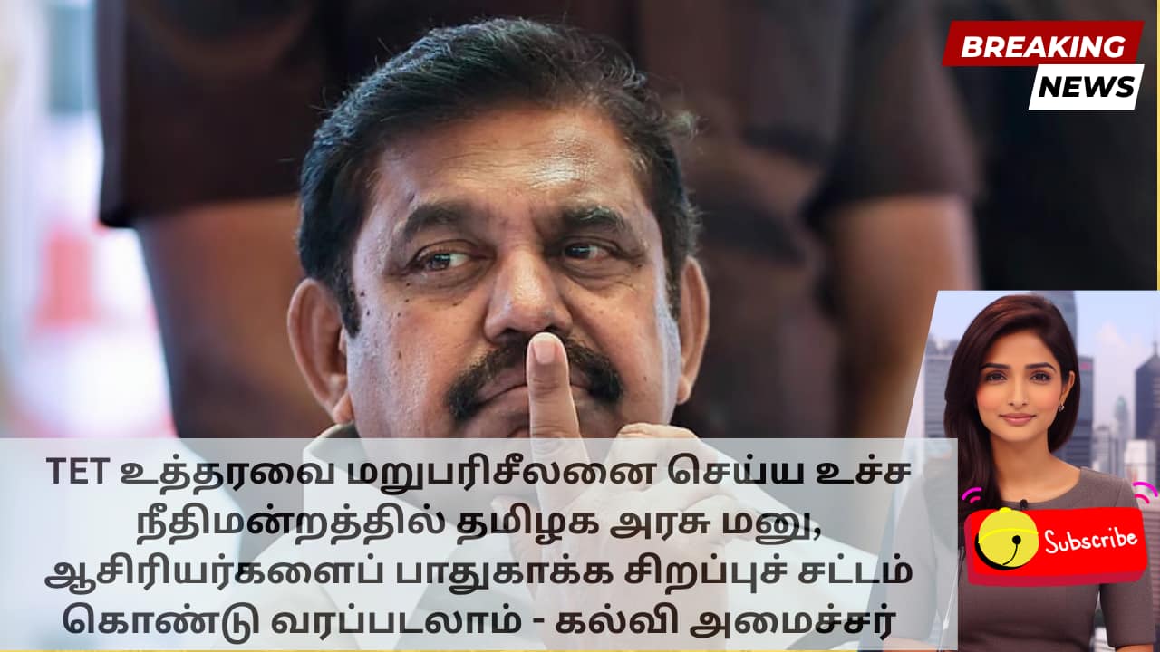 TET உத்தரவை மறுபரிசீலனை செய்ய உச்ச நீதிமன்றத்தில் தமிழக அரசு மனு, ஆசிரியர்களைப் பாதுகாக்க சிறப்புச் சட்டம் கொண்டு வரப்படலாம் – கல்வி அமைச்சர்