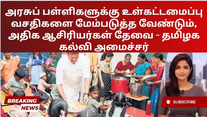 அரசுப் பள்ளிகளுக்கு உள்கட்டமைப்பு வசதிகளை மேம்படுத்த வேண்டும், அதிக ஆசிரியர்கள் தேவை – தமிழக கல்வி அமைச்சர்
