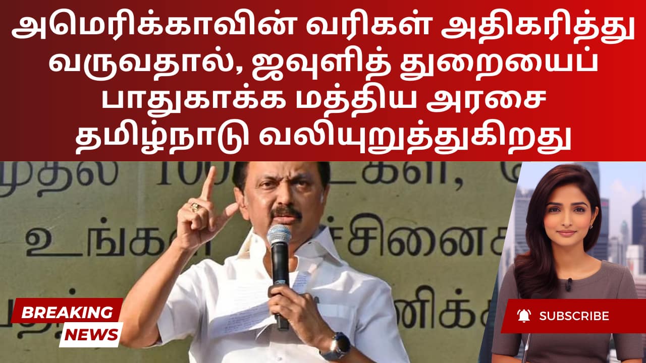 அமெரிக்காவின் வரி உயர்வு மாநிலத்தின் ஜவுளித் தொழிலை சீர்குலைக்கும் அச்சுறுத்தலை ஏற்படுத்துவதால், மத்திய அரசு தலையிட வேண்டும் என்று தமிழ்நாடு வலியுறுத்தியுள்ளது. கிட்டத்தட்ட 75 லட்சம் பேரை வேலைக்கு அமர்த்தும் மற்றும் இந்தியாவின் ஜவுளி ஏற்றுமதியில் மிகப்பெரிய பங்களிப்பை வழங்கும் துறைகளில் ஒன்றாக செயல்படும் இந்தத் துறை, 25 சதவீதத்திலிருந்து 50 சதவீதமாக வரிகளை உயர்த்தினால் பெரும் நெருக்கடியை சந்திக்க நேரிடும் என்று முதலமைச்சர் ஸ்டாலின் எச்சரித்துள்ளார்.