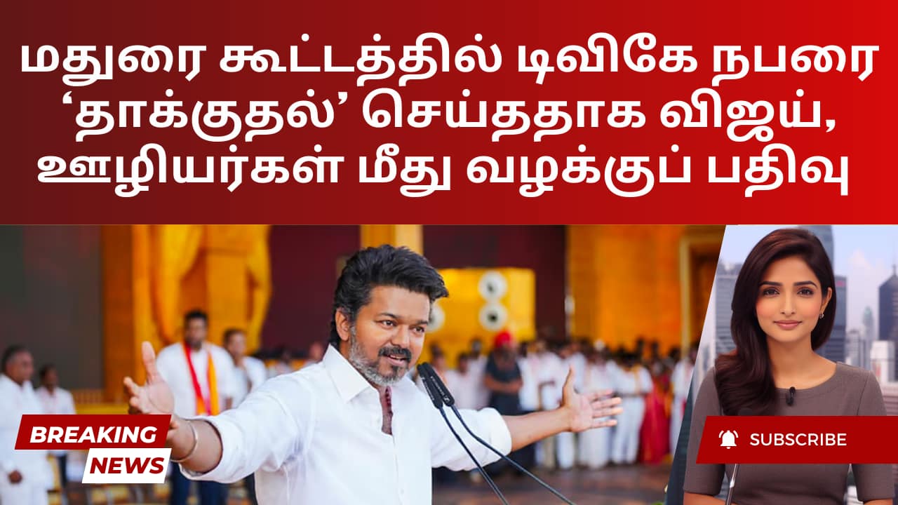 மதுரை கூட்டத்தில் டிவிகே நபரை ‘தாக்குதல்’ செய்ததாக விஜய், ஊழியர்கள் மீது வழக்குப் பதிவு