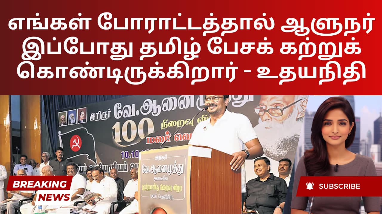 திமுக இளைஞர் அணி செயலாளரும் துணை முதல்வருமான உதயநிதி ஸ்டாலின், தமிழகத்தின் தொடர்ச்சியான போராட்டத்தின் காரணமாகவே ஆளுநர் ஆர் என் ரவி இப்போது தமிழ் கற்கத் தொடங்கியுள்ளதாகக் குறிப்பிட்டார். “இல்லையென்றால், நாம் அனைவரும் இப்போது இந்தி பேசியிருப்போம்,” என்று அவர் கூறினார். ஆளுநரின் சமீபத்திய தமிழில் கருத்து – “தமிழ்நாடு இப்போது யாருடன் போராடுகிறது?” – என்பதற்கு பதிலளிக்கும் விதமாக அவரது அறிக்கை வந்தது. இது திமுகவின் பிரச்சார முழக்கமான “தமிழ்நாடு போராடும், தமிழ்நாடு வெல்லும்” என்பதை விமர்சிப்பதாகக் கருதப்பட்டது. ரவியின் கருத்துக்கள் அவரது “தேர்தல் பிரச்சாரத்தின்” தொடக்கத்தைக் குறிக்கிறது என்றும், இது “திமுகவிற்கு மட்டுமே பயனளிக்கும்” என்றும் உதயநிதி மேலும் கூறினார்.