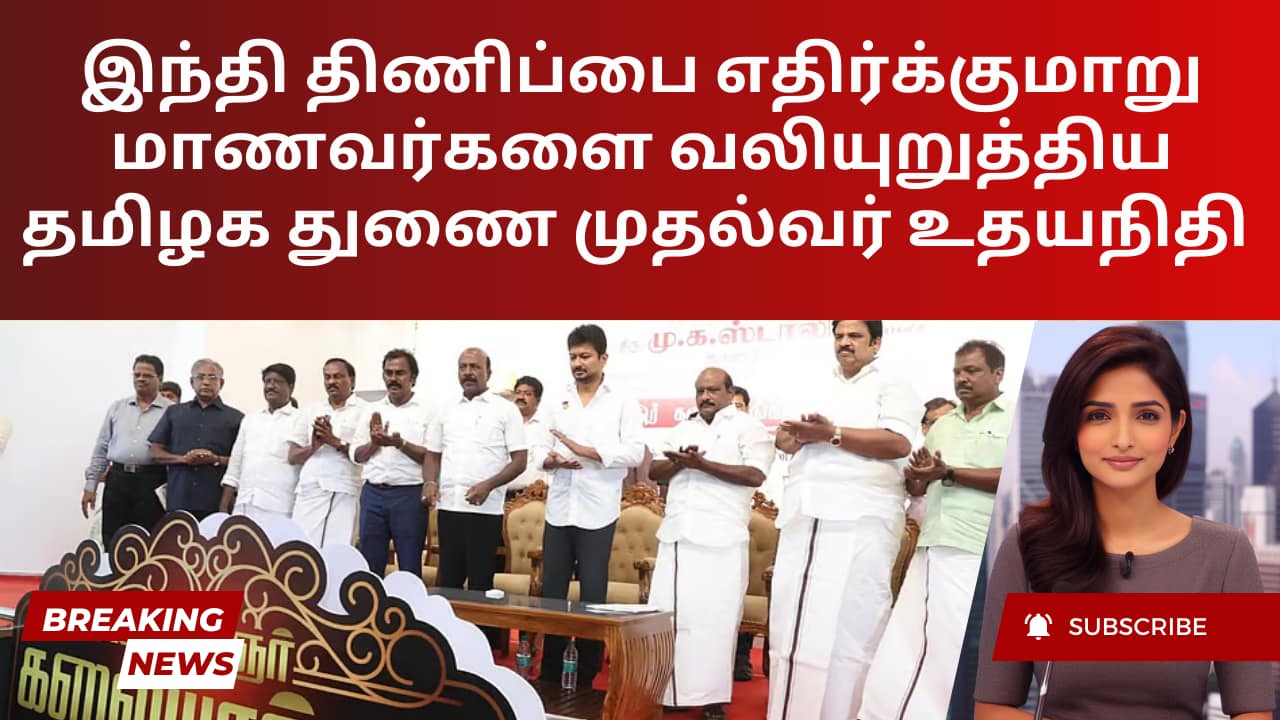 இந்தி திணிப்பை எதிர்க்குமாறு மாணவர்களை வலியுறுத்திய தமிழக துணை முதல்வர் உதயநிதி