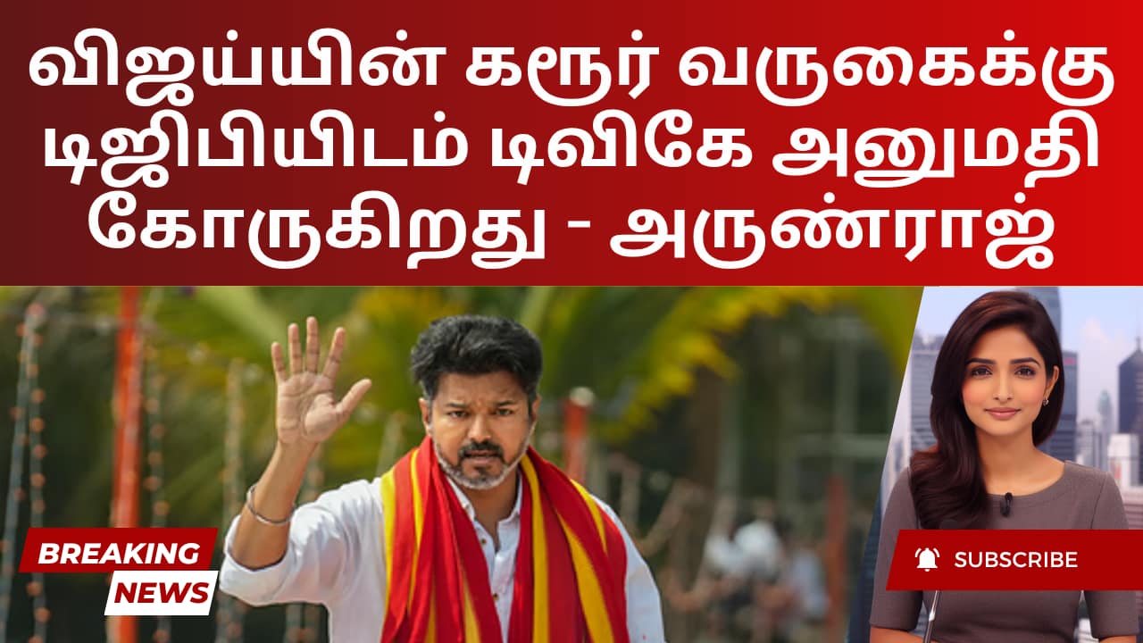 விஜய்யின் கரூர் வருகைக்கு டிஜிபியிடம் டிவிகே அனுமதி கோருகிறது – அருண்ராஜ்