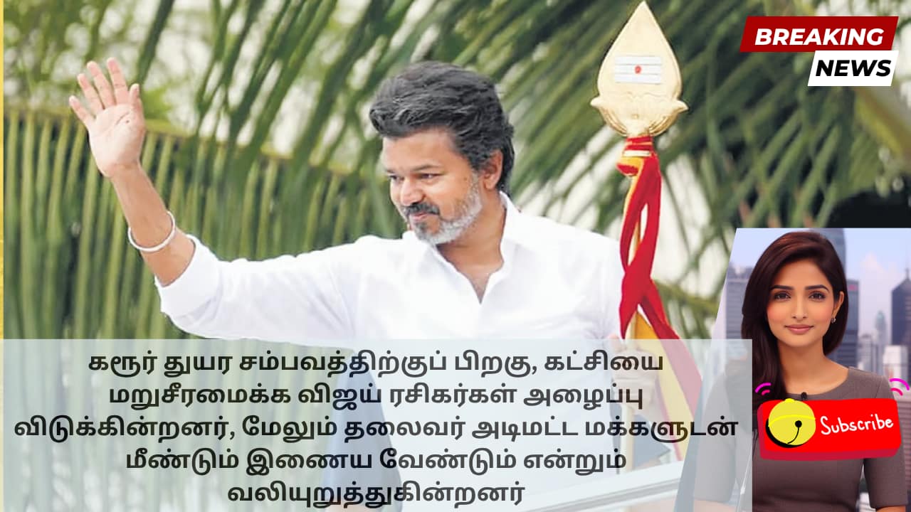 கரூர் துயர சம்பவத்திற்குப் பிறகு, கட்சியை மறுசீரமைக்க விஜய் ரசிகர்கள் அழைப்பு விடுக்கின்றனர், மேலும் தலைவர் அடிமட்ட மக்களுடன் மீண்டும் இணைய வேண்டும் என்றும் வலியுறுத்துகின்றனர்