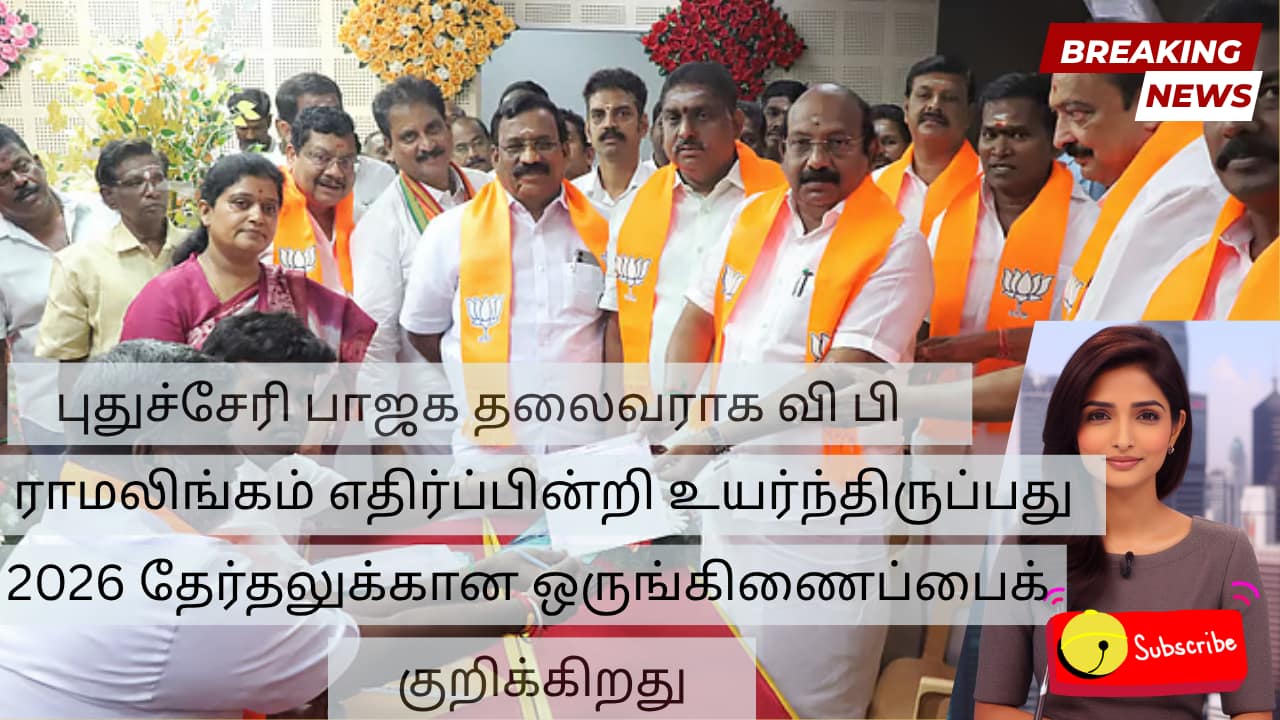 புதுச்சேரி பாஜக தலைவராக வி பி ராமலிங்கம் எதிர்ப்பின்றி உயர்ந்திருப்பது 2026 தேர்தலுக்கான ஒருங்கிணைப்பைக் குறிக்கிறது